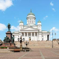 This Nordic nation boasts innovative cities surrounded by endless stretches of unspoilt nature. Around 10% of the country is covered by water, with around 180,000 lakes making it a great destination for swimming, boating or fishing. Finnish tourism is very much a tale of two seasons, with the winter period (typically December–March) offering wonderful skiing in Lapland, snowmobile treks and a chance to catch a glimpse of the other-worldly Northern Lights. Summer sees the arrival of the midnight sun and a huge variety of diverse music festivals and wacky events. Keep an eye out for the Air Guitar World Championships and the mobile phone throwing contest. Nicknamed the ‘Daughter of the Baltic’, the capital Helsinki is a hotspot for design shopping, cultural sites and striking architecture. Finland is awash with hotels, lakeside cottages and hostels. Helsinki features the widest range of choice including a number of self-catering apartments. The more remote accommodation options tend to be open in the summer season only.